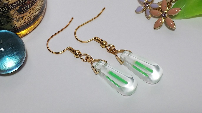 見た目は普通の天然石のアクセサリーですが、強い光を当てると 暗い所で蓄光塗料の性質が現れます。