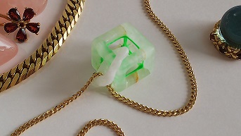「Moon Tear」は、カット・デザインをした天然石の内部または外部に蓄光塗料を施した商品になります。